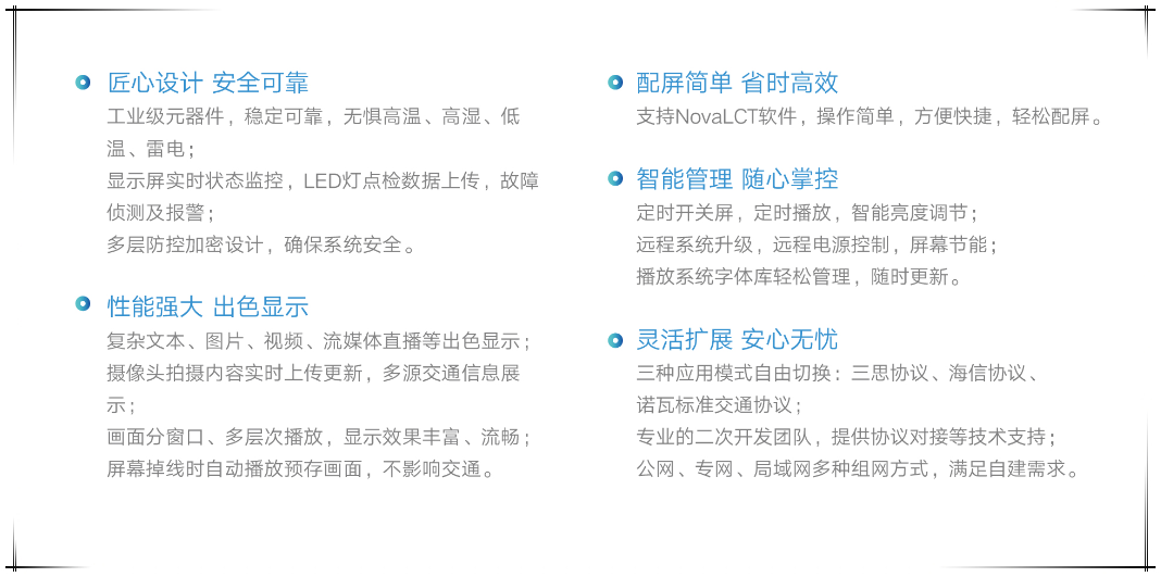 交通诱导解决方案,专注交通屏的稳定显示和状态监控,广泛应用于高速路可变信息板、城市诱导屏以及停车诱导屏,轻松应对复杂严苛的交通屏系统对接要求,具备安全、可靠、先进、实用、易扩展等特点,能够满足智慧交通信息化建设的切实需要。